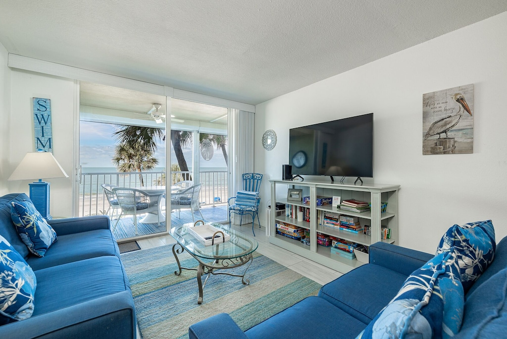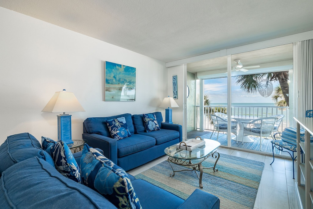 3 Bedrooms • 2 Bathrooms 2 Baths • Sleeps 1-8NEW! Take in breathtaking oceanfront views at this Sand Castle condo, where your oversized balcony is perfect for dining, dolphin watching and unforgettable sunsets. Wake up to the soothing sound of waves and enjoy the natural light streaming into the bedroom. The grounds are a tropical paradise, lined with palm trees and vibrant landscaping. Spend your days relaxing at the heated pool, hot tub or in the rec room with ping pong, foosball and a library. After your sun-soaked adventures, each bedroom offers a Smart TV for endless entertainment. Perfect for a relaxing beachside getaway for couples and families alike!