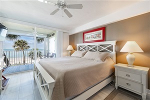 Primary Bedroom - Spacious primary suite with King bed, Smart TV, private balcony access and ensuite bathroom