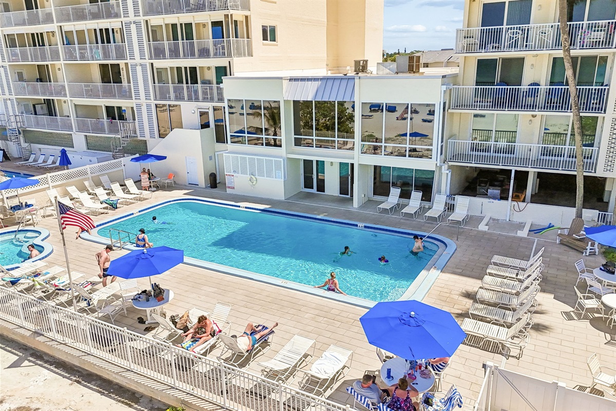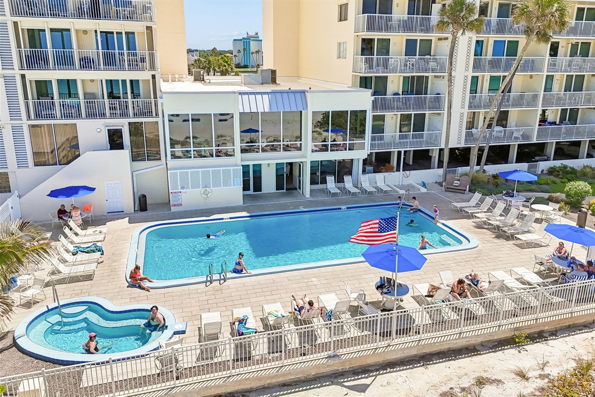 Enjoy breathtaking oceanfront views at this Sand Castle condo, where the oversized balcony is perfect for outdoor dining, dolphin watching, and unforgettable sunsets. Wake each morning to the soothing sound of waves and natural light pouring into the bedroom. The beautifully maintained grounds feel like a tropical paradise, lined with palm trees and lush landscaping. Spend your days unwinding at the heated pool or soaking in the hot tub. After a day in the sun, retreat to the comfort of your space where each bedroom includes a Smart TV for added relaxation. Conveniently located just across the street from Caddy’s, a local favorite for dining and drinks, this condo is the perfect beachside escape for couples and families alike.