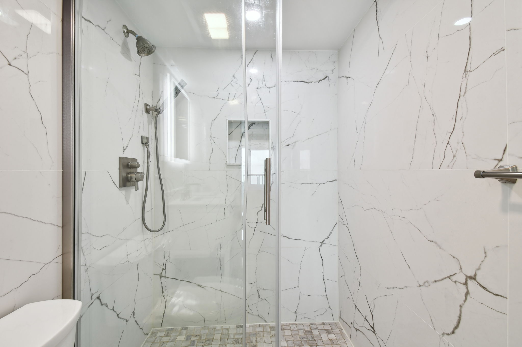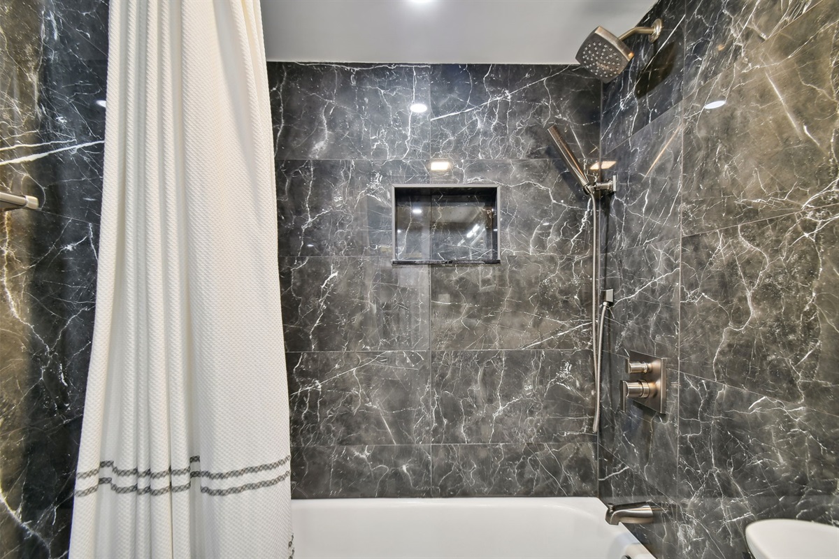 Primary Bedroom – King mattress, ensuite marble bathroom with dual shower heads, private sliding door balcony access, Smart TV.