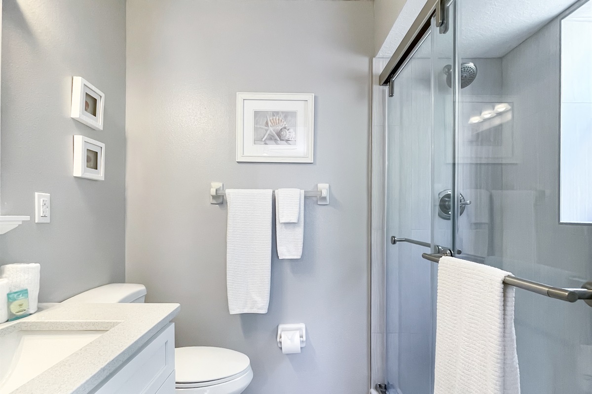 Guest Bathroom – Entering the condo down the hall on your right between the Master Bedroom and Second Bedroom is the hallway bath with shower tub combo.