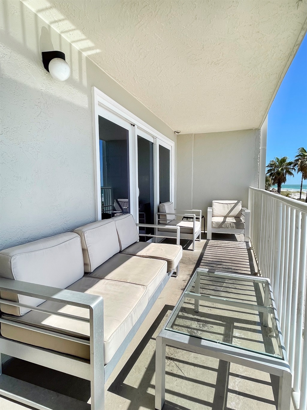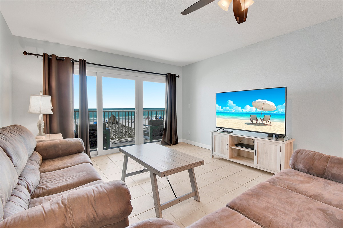 Living Room – Oceanfront views of the shimmering Gulf shores with plush sofa's for your comfort and Smart TV for endless entertainment. Queen pullout sleeper sofa for extra sleeping space.